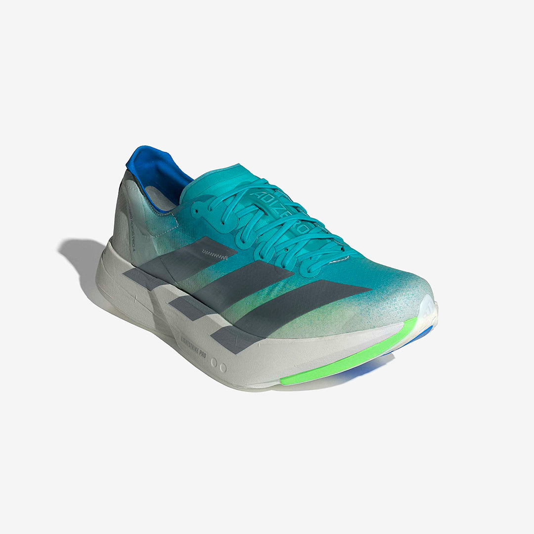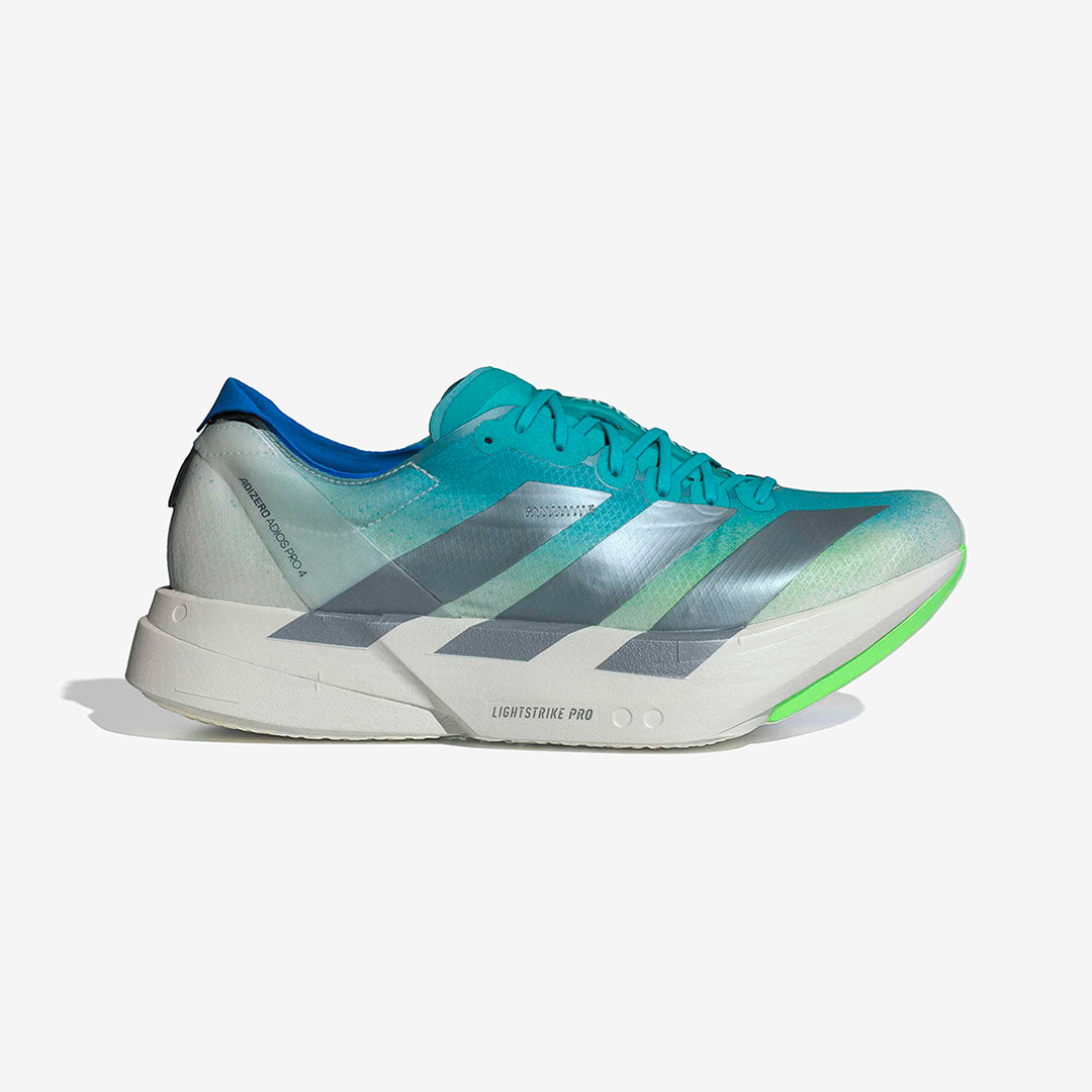 At the heart of the Adios Pro 4 sits adidas Lightstrike Pro cushioning, delivering a super-light, highly responsive ride that helps convert effort into forward momentum. Tuned for race conditions, the midsole provides the energy return and protection needed to hold pace deep into long efforts without unnecessary weight underfoot.