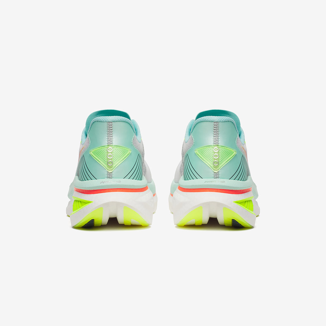 With its bold design aesthetic, the new SAUCONY Endorphin Azura introduces a non-plated super foam experience to their Fast & Light category. Designed as a high- performance daily trainer, the Endorphin Azura offers the perfect combination of a soft, bouncy ride for your daily miles, while delivering a responsive snap from the full PWRRUN PB midsole and SpeedRoll technology for when you pick up the pace.