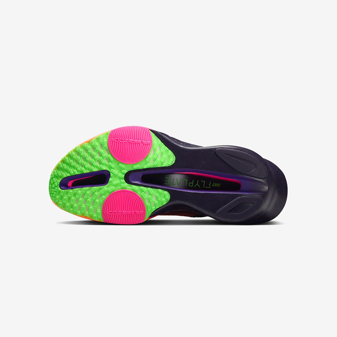 The latest Alphafly also features an Atomknit upper, offering breathable, lightweight containment that adapts to your foot during high-effort running. An integrated knit tongue with soft padding helps reduce lace pressure, while notched laces ensure a secure, comfortable lockdown.