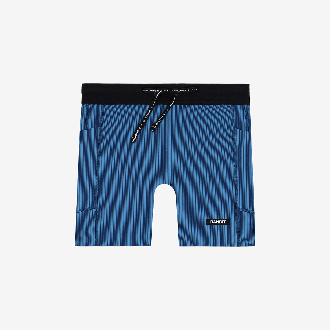 Built with input from the NYC running community, the Bandit Women's Striped Cadence 5" Compression Shorts "Ink Blue/Aegean" are designed for high-output efforts where support and efficiency matter.